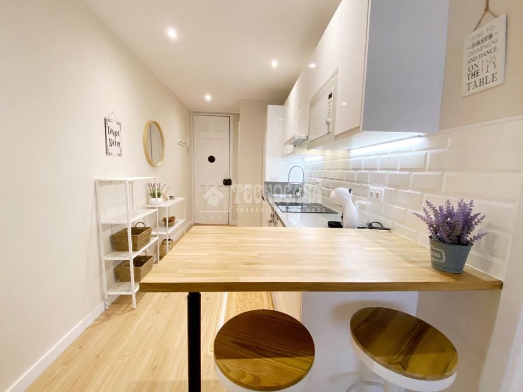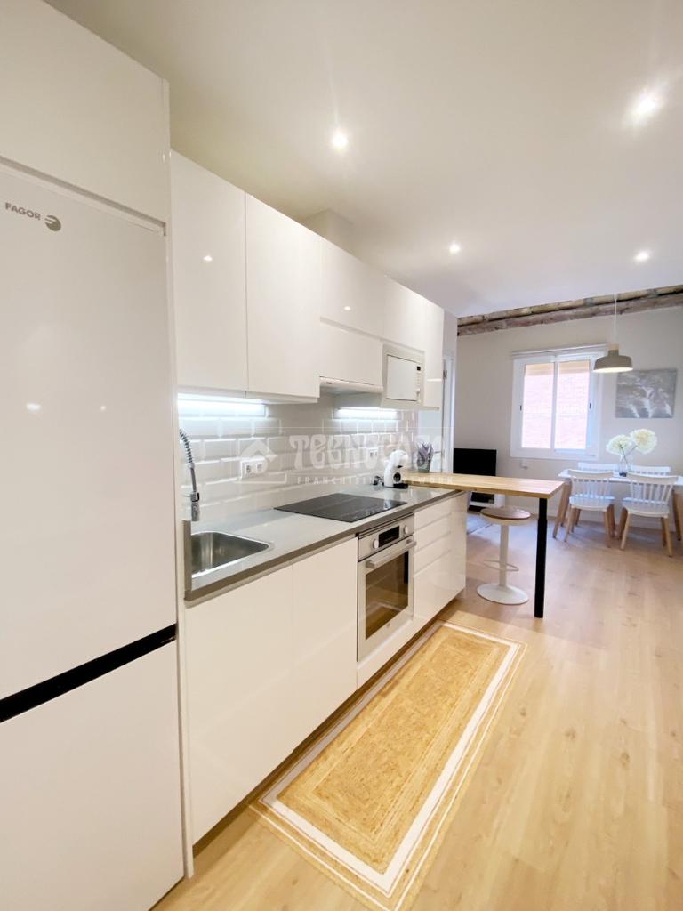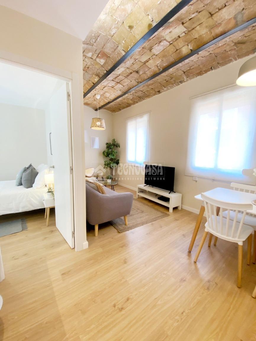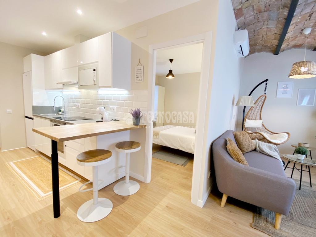 BERGUEDÀ - TRAV. DE LES CORTS - Vivienda recientemente reformada compuesta de un dormitorio (antes dos) grande con baño en suite, cocina americana y salón comedor. Orientación Sur-Oeste con muchas horas de sol directo. Ubicado en una finca regia rehabilitada, en una 5ª planta real, sin ascensor ni posibilidad de instalarlo. Totalmente equipado y amueblado.